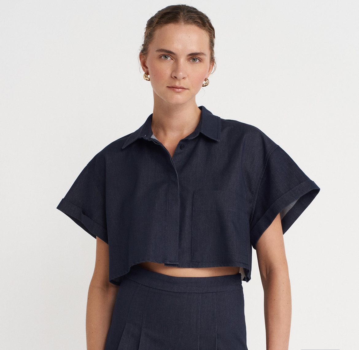 شومیز جین کراپ رنگ تیره برند دیلوین dilvin