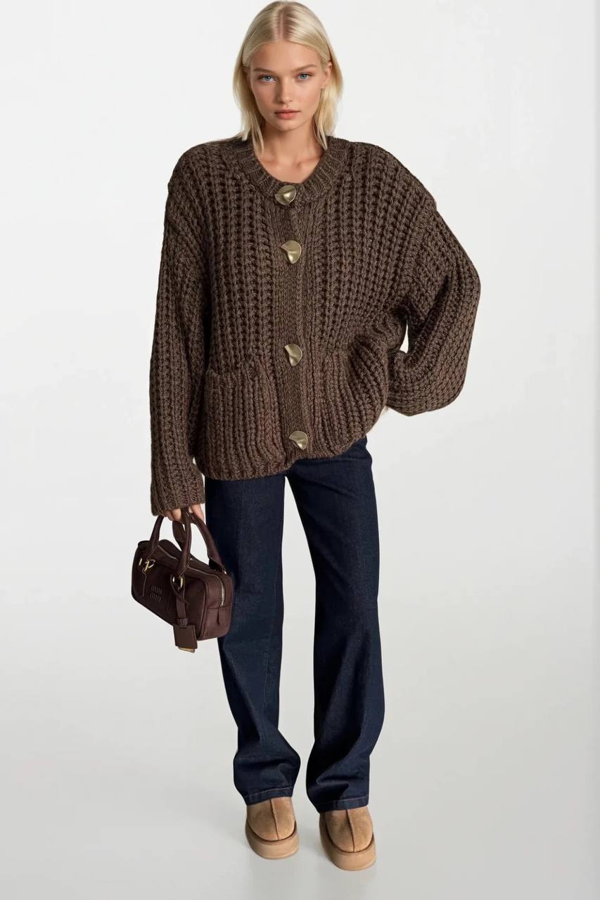 بافت کاردیگان دکمه طلایی برند دیلوین dilvin تک رنگ